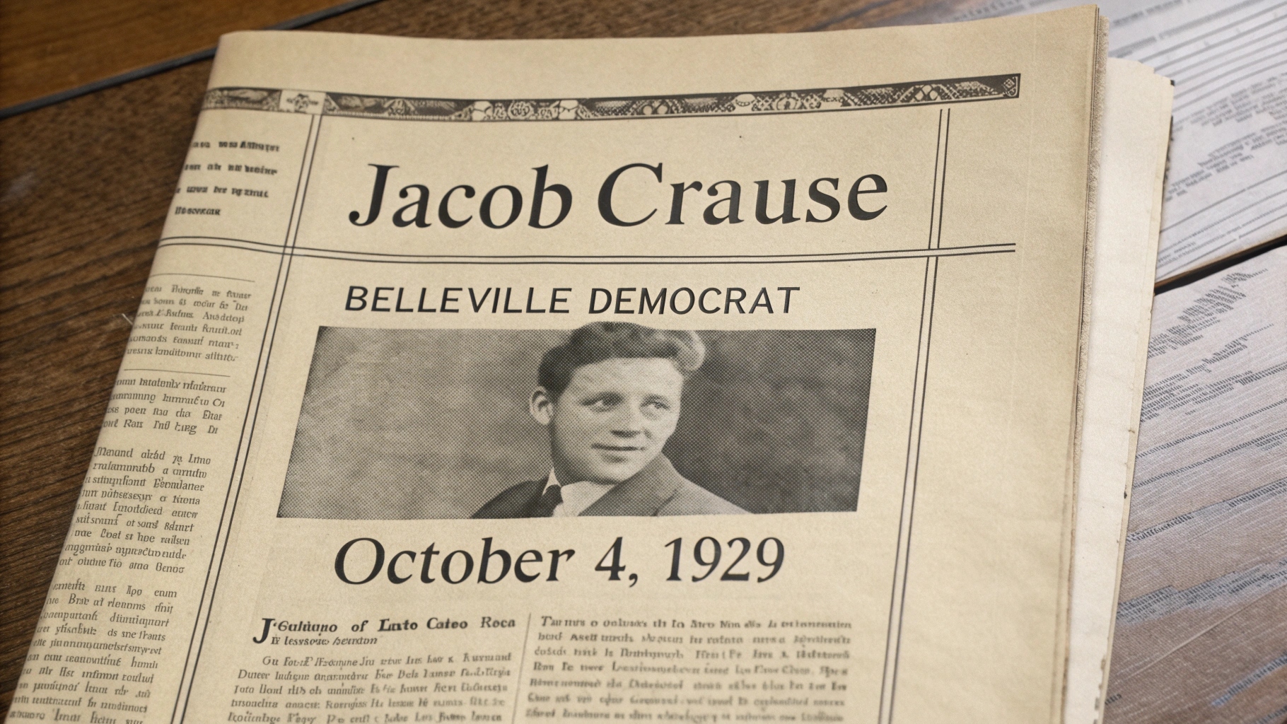 On October 4, 1929, the Belleville Democrat published the obituary of Jacob Crause, commemorating a man whose life was deeply intertwined with the growth and well-being of Belleville.